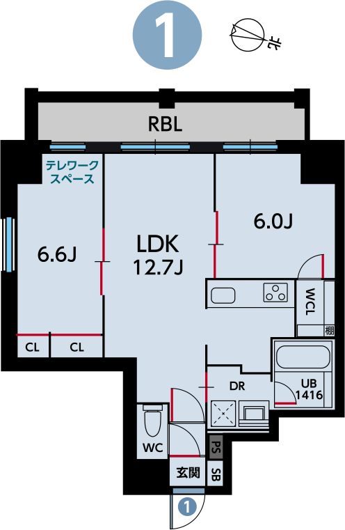プラン01[2LDK]は、各階共通の間取りです。