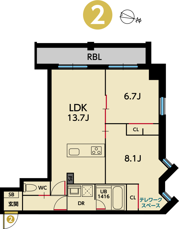 プラン02[2LDK]は、各階共通の間取りです。