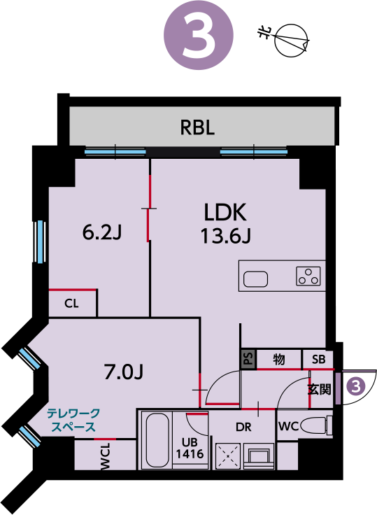 プラン03[2LDK]は、各階共通の間取りです。