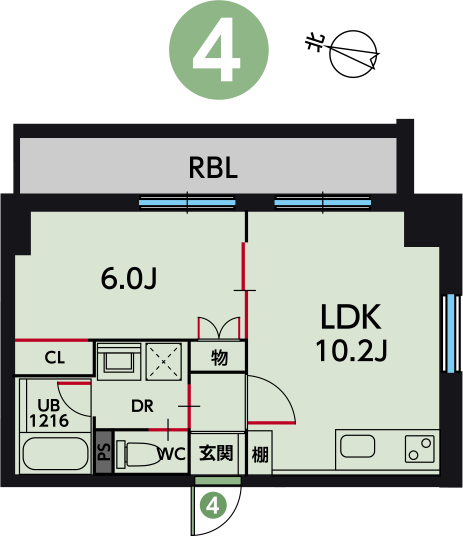 プラン04[1LDK]は、各階共通の間取りです。